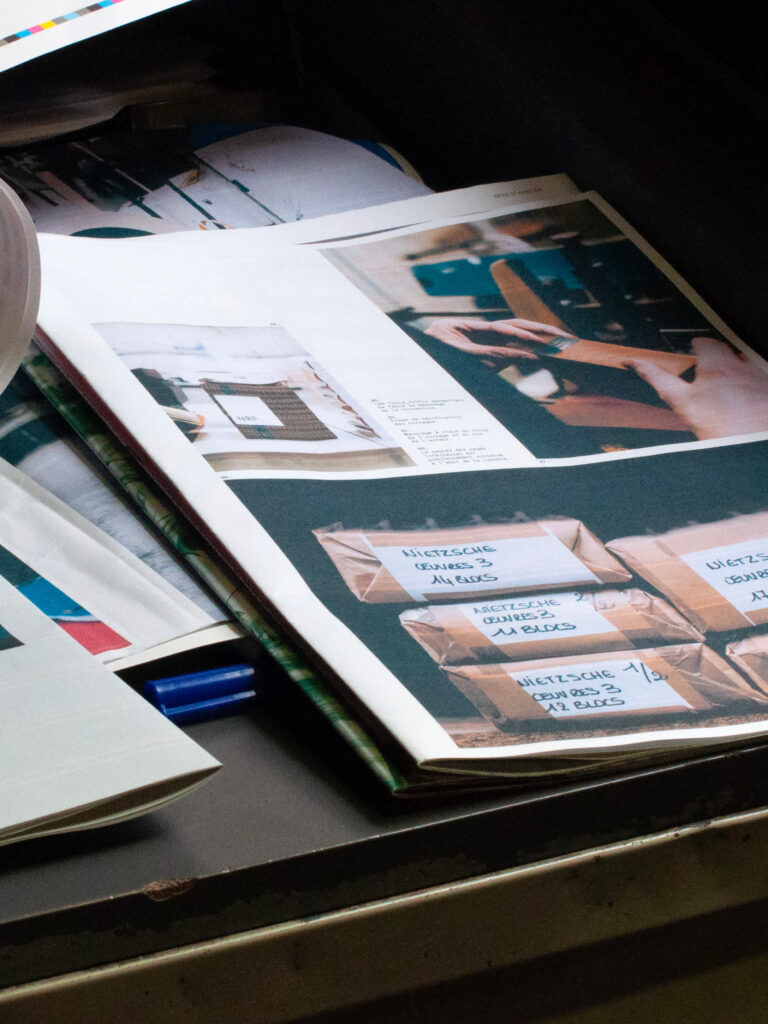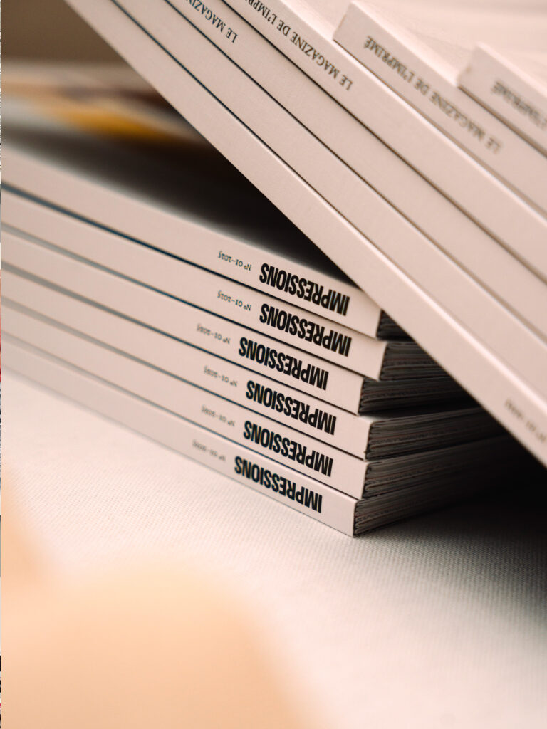De cette conviction que l’imprimé n’est pas seulement un support, mais un territoire. Un lieu où les idées prennent forme, où la beauté se fabrique, où l’on peut encore ralentir, regarder, comprendre. Éditer Impressions, c’est prolonger notre métier autrement : en posant notre regard pour raconter, en fabriquant un objet qui nous ressemble. Une revue indépendante, exigeante, pensée avec la même précision que nos productions. Un espace où notre rapport au papier, au geste, à la forme peut s’exprimer librement.